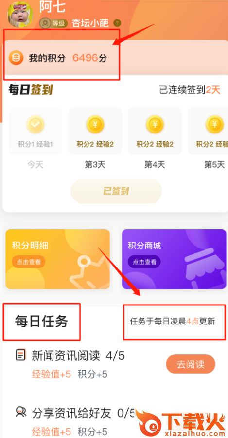 3、任务中心,完成任务拿积分