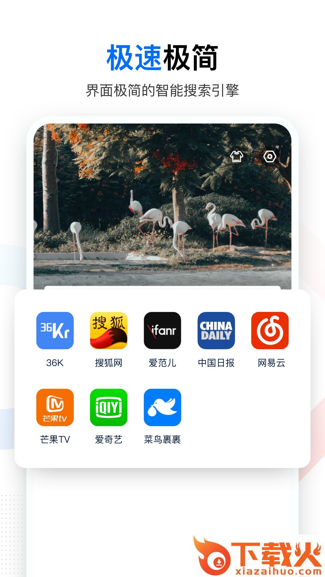 一款高效轻便的浏览器,依托大数据处理核心技术,为您提供丰富的内容资源和强大的搜索能力,让您想搜啥搜啥,既快又准,是手机上网必备浏览器!