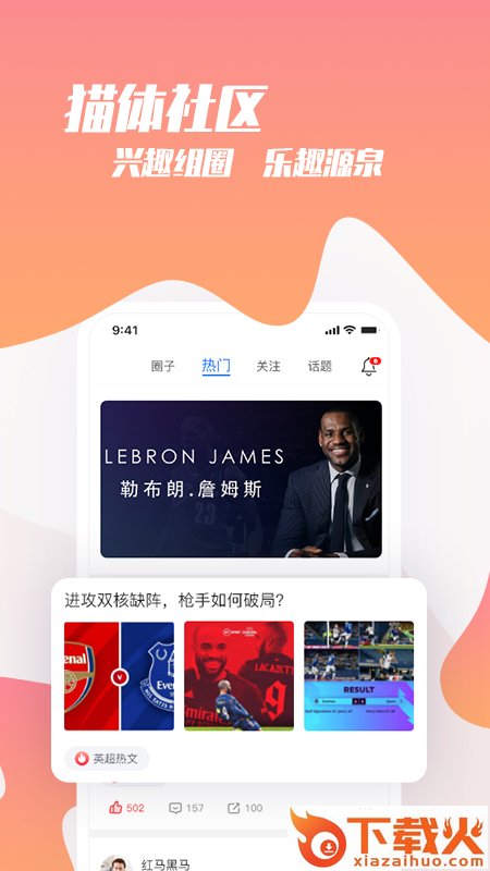 2、「猫体圈」球迷社区,热点话题。高度一致的兴趣爱好,让你快速找到组织。