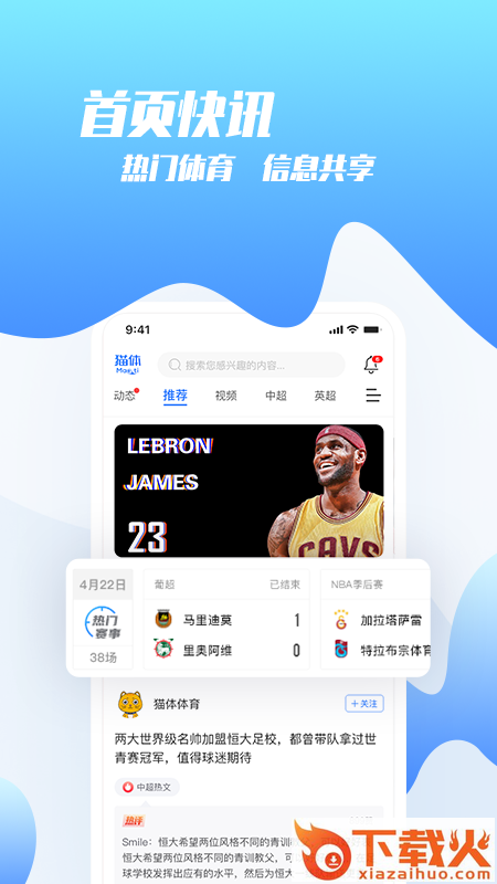 猫体体育app是款集体育资讯、赛程积分、比赛直播、球迷圈子这四大方面内容于一体的手机app,精选大量体育资讯动态,发布及时,内容丰富,时刻关注最新体育内容,享受便捷生活。