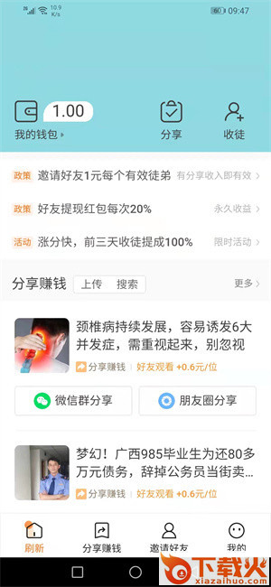 3、涨分极快,新人下载奖励1元,转发文章单价0.6元一次,可导入文章