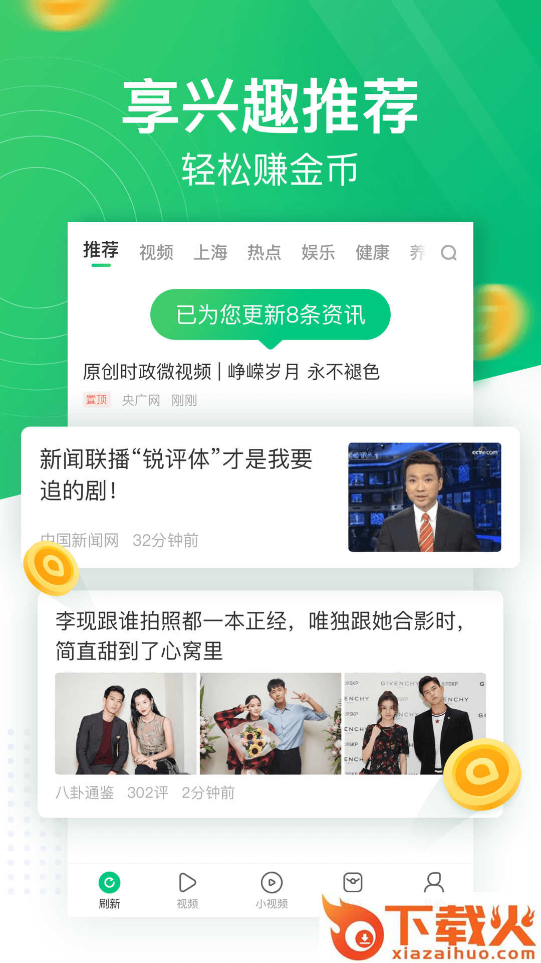 集合生活、娱乐、社会、养生、时尚等海量新鲜内容呈现给用户。另外在阅读资讯的同时,还有丰富的活动、宝箱、福利、等奖励措施帮助用户在养成良好阅读习惯的同时获取丰厚的回报。