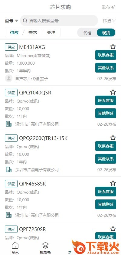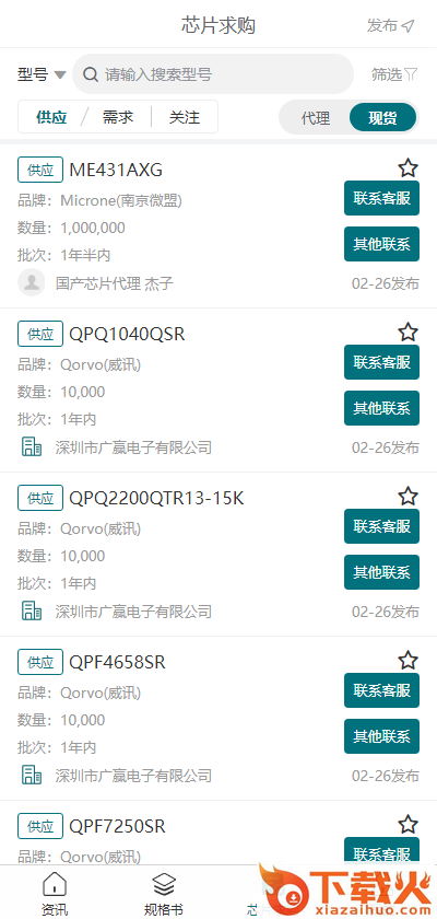 2、根据个人需求,筛选芯片品牌、价格、型号、供需信息,找到满意的求购、供应内容,轻松联系