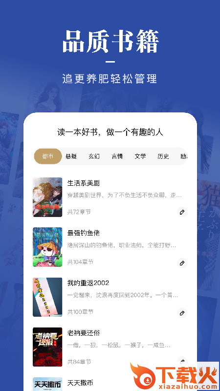 从网络原创小说到出版畅销图书,内容囊括玄幻、都市、历史、军事、女性、穿越、言情、灵异、文艺、传记等多个分类。倾心为用户提供丰富多彩的海量精品的图书资源,使用户喜好选择更方便。