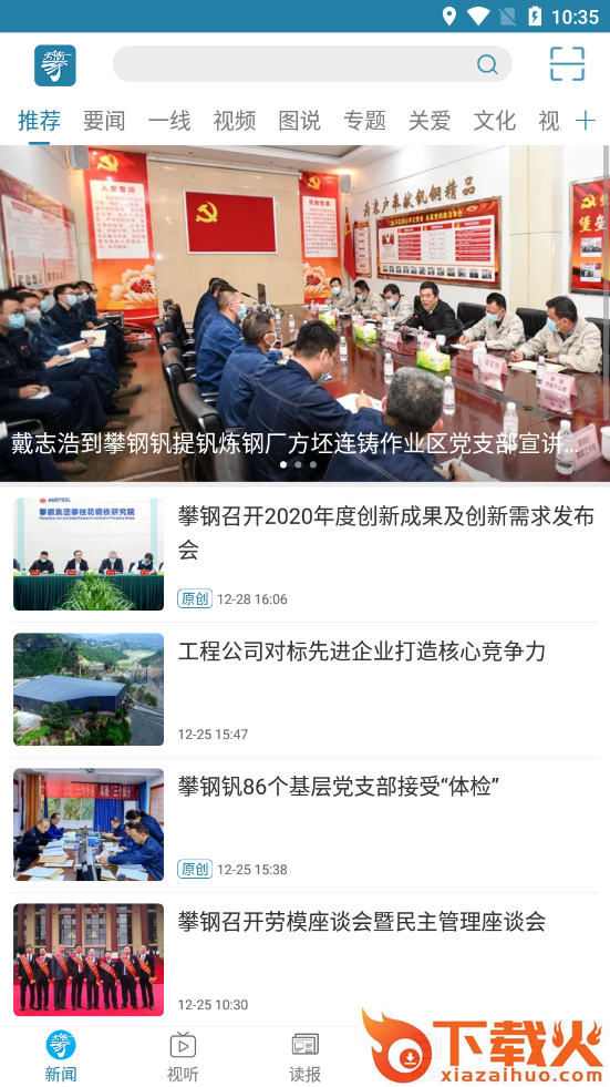 新攀钢app,攀钢集团掌上新闻融媒体客户端。软件聚合集团内部新闻、视听、快报以及服务,实时更新集团最新报道,帮助全方位了解攀钢工作、生活,需要的朋友点击下载吧。