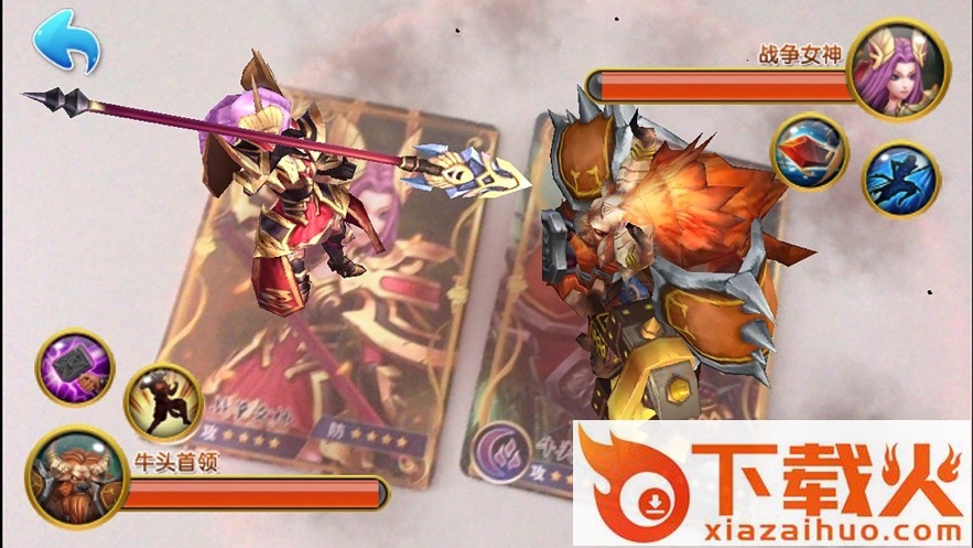 将两张对战卡片放入对战场景中,通过摄像头扫描,两个对战角色就会出现在画面中,玩家可以通过按钮释放角色技能,最终取得对战的胜利,全程语音解说,精彩纷呈。