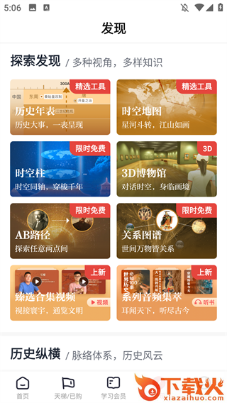 4、发现界面用户可以探索历史,多种视角,多样知识,历史纵横,历史风云;
