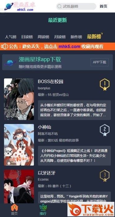 漫画星球app是一款可以在线浏览高清漫画的阅读app软件,在这款软件里国产漫画居多,更有日漫美漫韩漫等你来查看!排版设计清新简洁方便寻找你心仪的漫画,漫画资深爱好者赶紧来腾牛网下载吧!