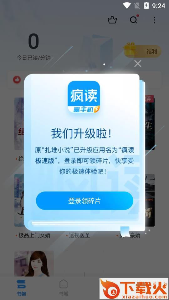 疯读极速版app,手机免费小说阅读器。疯读极速版汇聚了各种小说类型资源,男女频分类阅读更加惬意,现在下载疯读极速版,登录看小说,即可领取碎片,参与手机抽奖,感兴趣的朋友点击下载吧。...