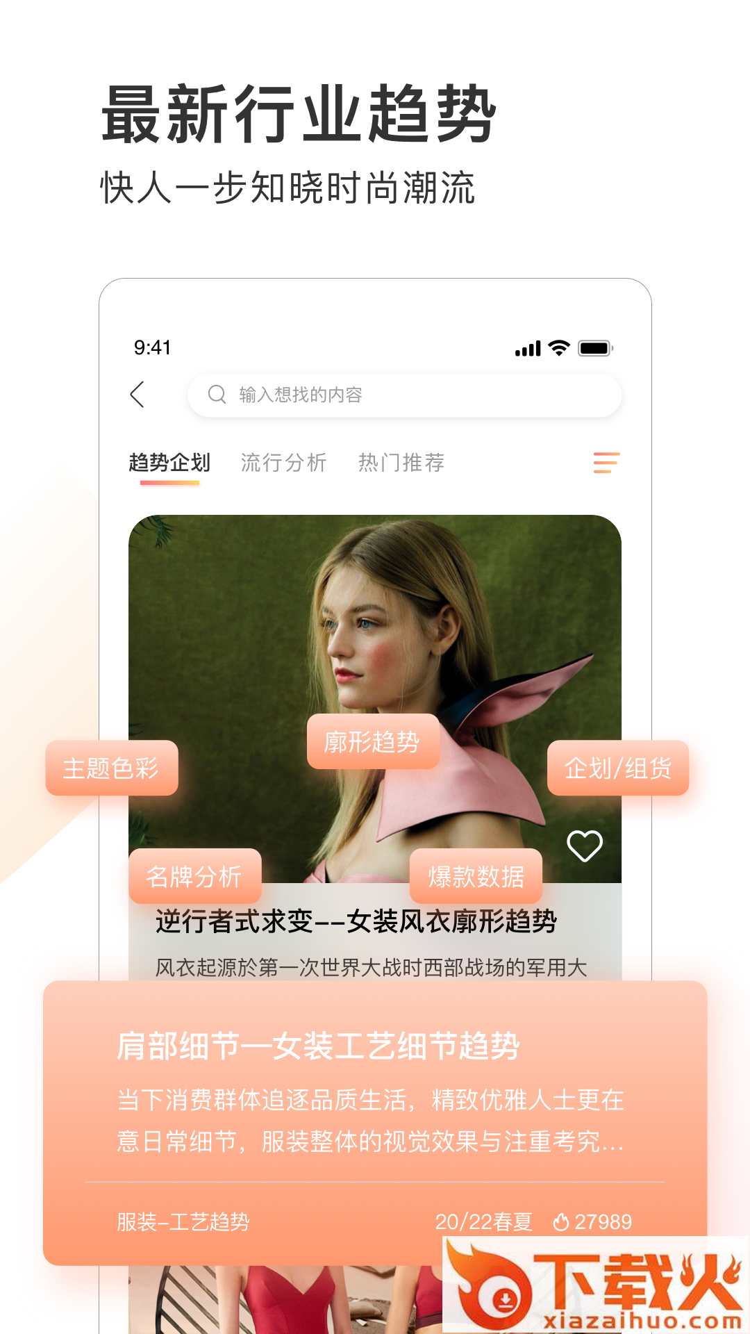 POP趋势,是广受从事时尚行业爱好者、设计师欢迎的超势资讯平台,POP趋势是一款专为设计师提供服装、鞋子、箱包、家纺、首饰5大时尚行业最前沿资讯的应用,行业专家为设计师洞察最新研发季节的流行风向,同时借助大数据智能分析,从秀场大片、订货会精选、设计师品牌、全球优质名等多个维度精选挑选出最受市场、用户欢迎的海量高清款式图