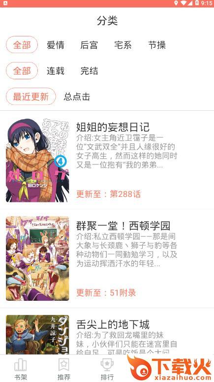 2、这里实时为你更新漫画资源,还�E智能的为你推荐漫画热门榜,让你在这里不会有书荒的感觉。