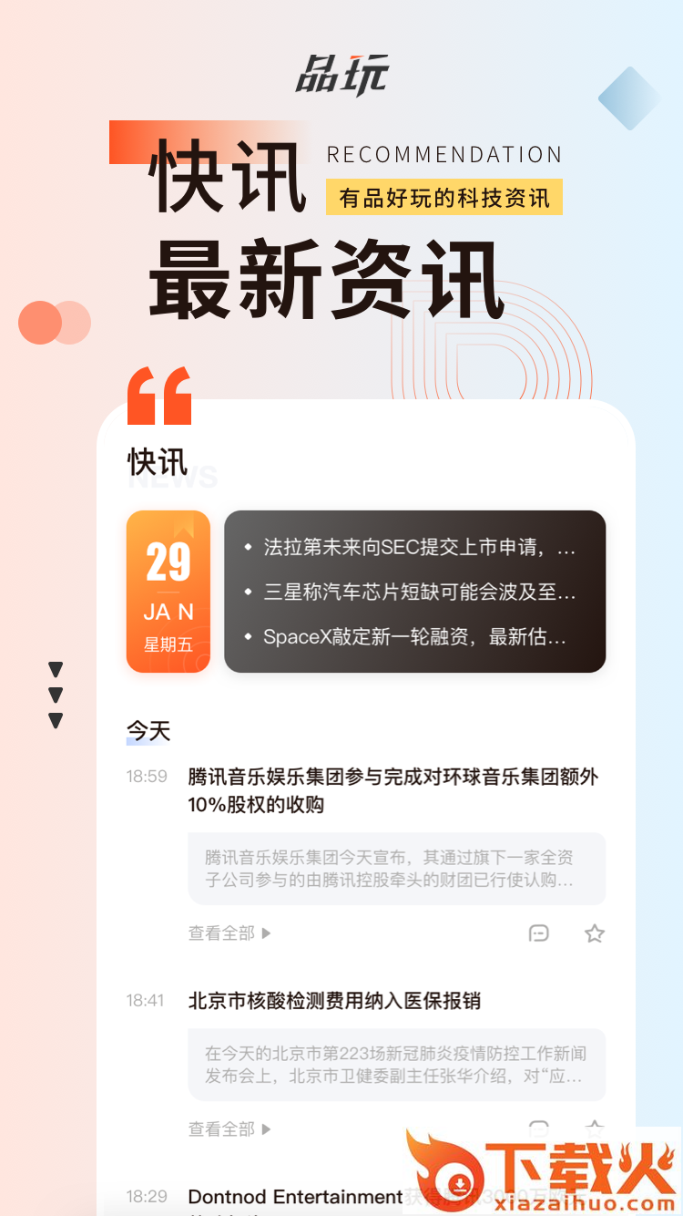 品玩APP,科技创新者的每日必读;首页频道中,每日热门资讯为您推荐;快讯频道,最新资讯您先知晓;还有热榜频道,优质热帖随时查看实时跟新最新进展。...