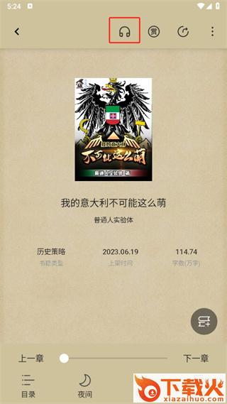 3、最后点击过后我们在小说的页面中点击页面正中间后点击上方的【耳机图标】即可;