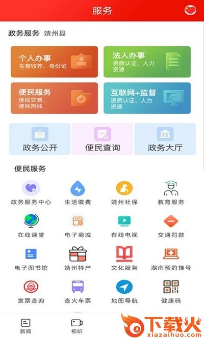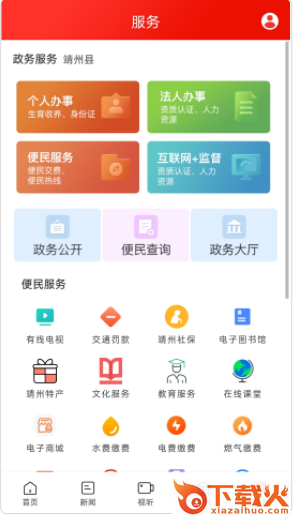 云上靖州app是一款十分好用的靖州本地新闻资讯软件,通过软件可以及时浏览最新的热点资讯,同时涵盖了新时代文明实践、短视频直播、电台点播、学习强国、城市留言板等众多内容,软件上面还可进行生活缴费、社保、教育、商城等等服务。
