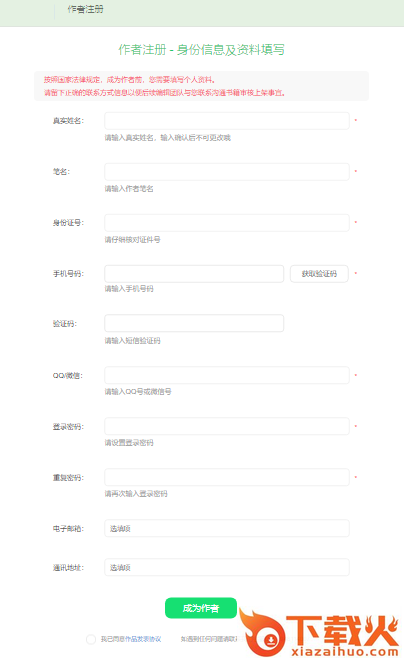 3、填写资料信息,注册成为作者
