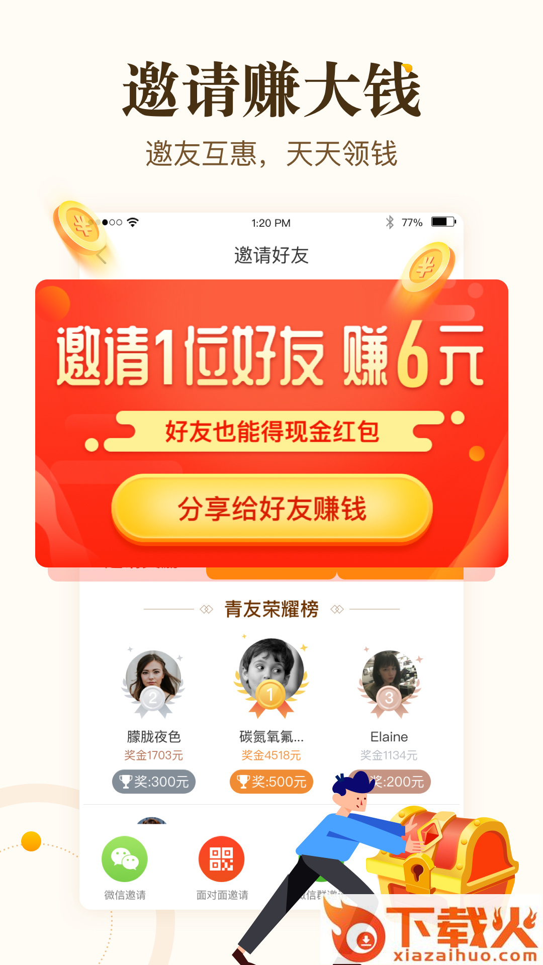 【邀请好友赚现金-每日躺赚堪比印钞机】分享APP给微信、QQ和身边好友一起玩,每日得邀请现金奖励,至少100元起。亲朋好友常互动,生活有趣还赚钱。