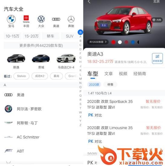 “选车”中呈现的内容,是品牌汽车的种类,可供用户查询相对应的汽车信息,包含车型、文章、视频以及经销商。如果想获取最低的价格,则可以点击“获取底价”,填写自己的联信信息,选择经销商后,会在最快的时间得到报价。