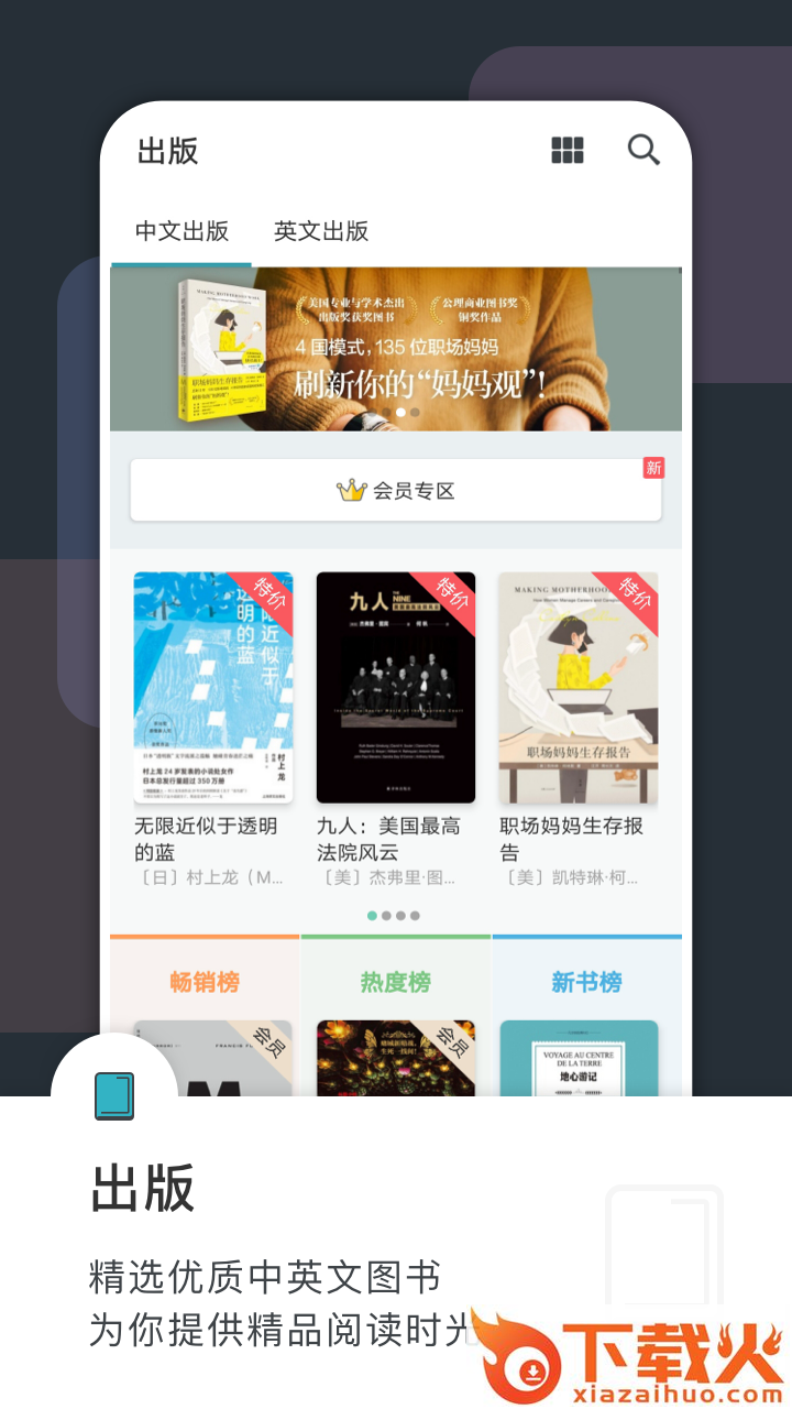 豆瓣阅读是最专注的中文原创写作平台,任何作者可以来这里写作文章、专栏、中篇乃至长篇作品;同时,豆瓣阅读发售出版社正版图书的电子书,读者可以在应用中读到独家原创小说和电子图书。