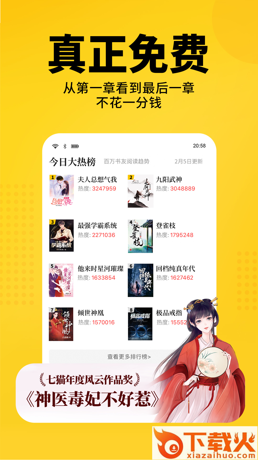 推荐、男生、女生、出版四大版块,多维度分类、热门排行榜单,小编为你精心推荐。在这里,能读到的不止是免费。