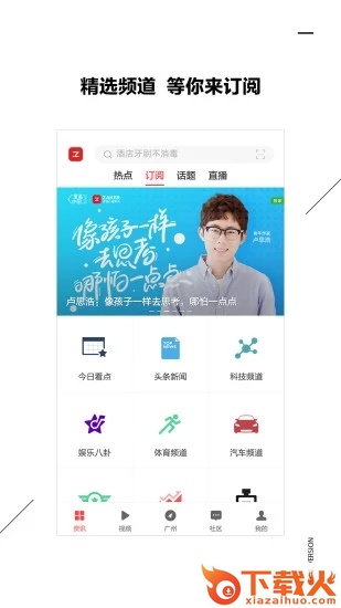 2、新闻、财经、科技、体育、汽车、时尚、娱乐、游戏动漫、星座、旅游、美食、美图等近20大频道,千种精品内容源,实时更新,自由添加。