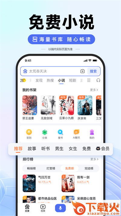 海量正版小说随心看,新增书架列表、阅读进度可以多台设备自动云同步。