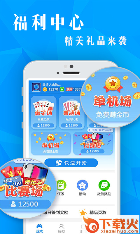 竖屏斗地主是一款手机斗地主游戏,游戏拥有经典玩法,拥有百变癞子玩法,拥有多重话费好礼,可以让玩家手机畅玩斗地主,喜欢斗地主的朋友赶紧下载爽玩吧。