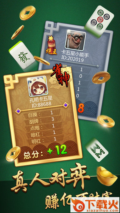 熟人麻将:微信邀请好友,3人卡五星马上开战,每局成绩都记录详细。谁是雀神,一目了然。