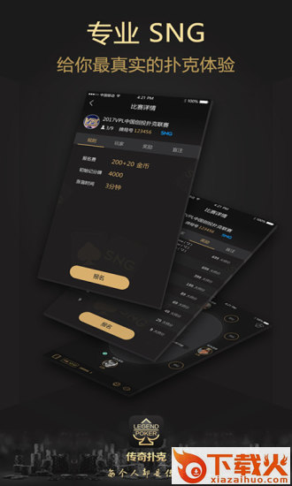 传奇扑克是腾讯应用宝平台发布的一款扑克手游APP,游戏主推SNG玩法,由社会精英等高端人士线上参与,游戏依托腾讯平台,主打社交核心,能够带给玩家最真实的体验,同时有机会获得真人同台机会,获得扑克界至高...