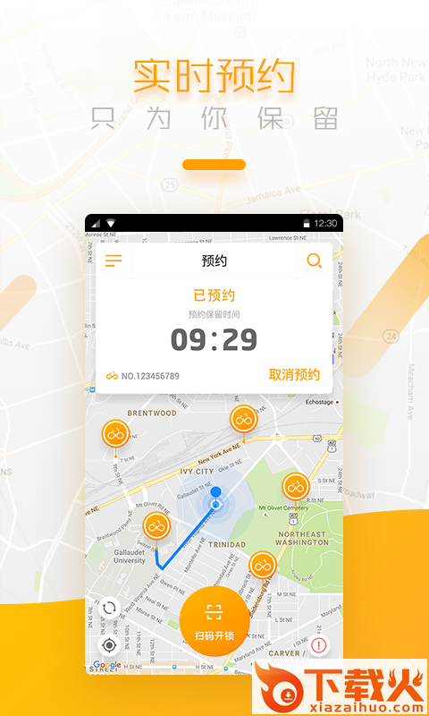 App扫码或者一键输入,快速开锁,关锁自动终止骑行。