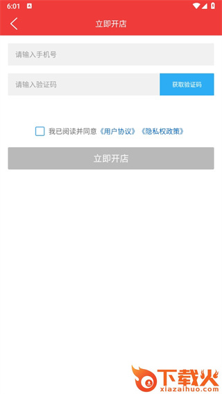2、点击过后在立即开店的页面中输入上手机后和验证码后点击【立即开店】即可;