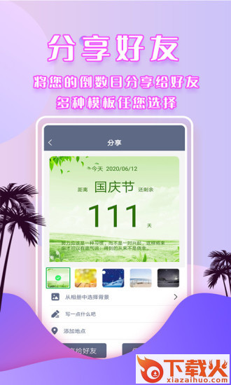 1、分享好友,将您的倒数日分享给好友,多种模板任你选择