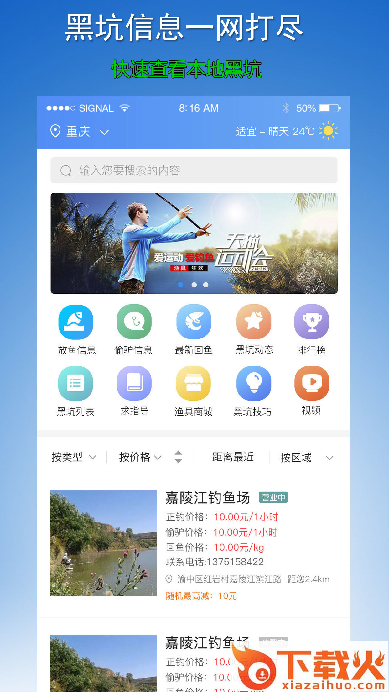 黑坑之家app是一款专为钓友打造的黑坑信息查询软件,可以实时掌握全国黑坑、全国欢乐塘、全国收费塘、全国放鱼、全国黑坑放鱼信息、全国欢乐塘放鱼信息、全国放鱼信息情况,同时还可以在线购买渔具,价格实惠,方便快捷,感兴趣的朋友欢迎下载体验。