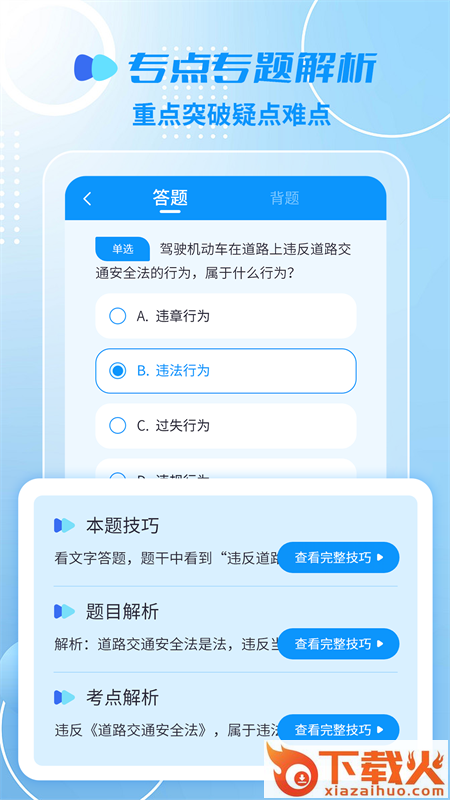 摩托驾考一点通,是一款可以帮助摩托车学员学习摩托车考试技巧,增加通过摩托车驾照考试几率的摩托车驾考软件,