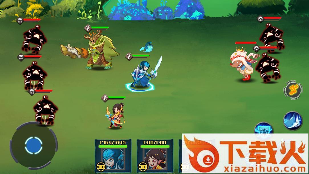 1、游戏操作十分简单,游戏中玩家只需要拖动你将要出战的英雄并将他们放到相应的位置,他们就会自行战斗,你需要时刻升级你的英雄和装备,这样才能击退一波又一波的敌人。