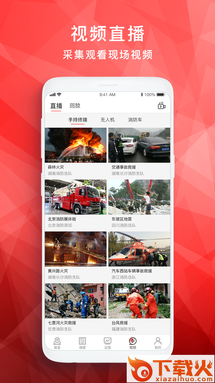 该应用集装备展示、调度、运营、视频等功能,在突发灾情事件中,快速响应,充分利用社会资源参与救援。