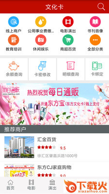本APP端为东方文化卡用户群提供在线购买电影票、演出票,生鲜食品,文化卡加盟商户查询、余额明细查询、密码修改等功能,支持捕娱网会员信息、订单、积分信息查询,手机支付web网站订单,支付方式为东方文化卡、手机银联支付。