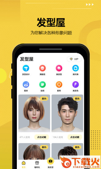 发型屋是一款发型设计软件,你只需上传一张头部照片就能在海量的发型库里轻松换发型,而且还能找身边的发型师帮助你设计发型。发型屋全新改版升级,智能发型设计,智能优化匹配发型师,一个发型相机就可以解决发型设计与脸型搭配的发型苦恼问题,拍照换发型,推荐有价值的发型设计教程,简单的头型设计,给你一秒焕发的百变发型。