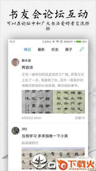 书法碑帖大全app是一款古今书法碑帖应用,软件拥有海量高清书法碑帖图片,拥有书法教学视频,还拥有书法爱好者互动交流等功能,喜欢书法的朋友欢迎前来下载使用。