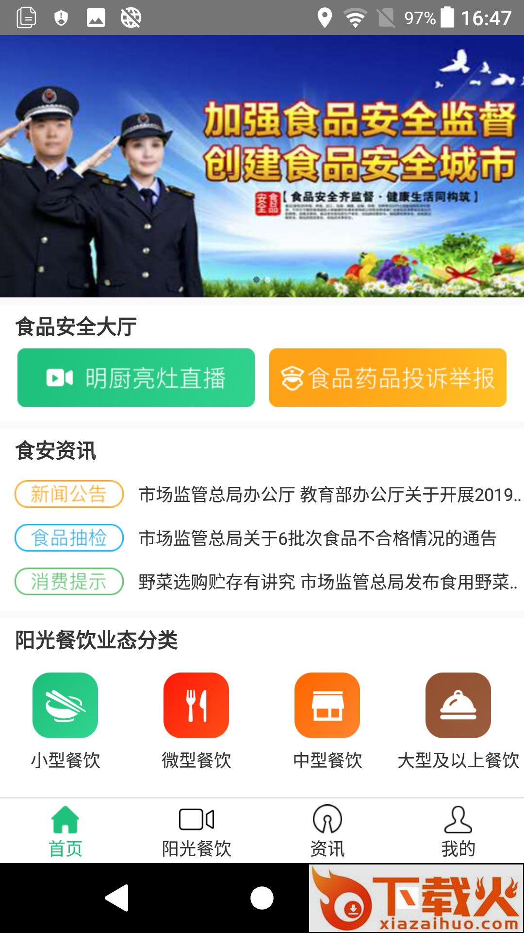 阳光餐饮智慧食安app,为食品安全保驾护航,加强食品安全监督,创建食品安全安全城市,提供了名厨亮灶直播、食品药品投诉举报服务,支持小型餐饮、微型餐饮、中型餐饮、大型及以上餐饮等。