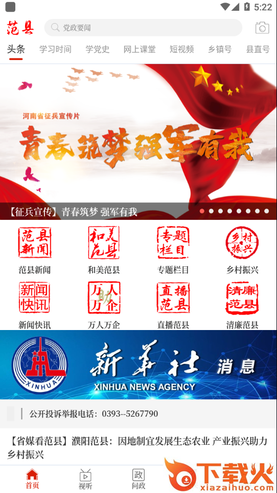 云上范县app是专为范县制作的融媒体移动平台,平台拥有新闻,视听,问政,便民等功能内容,可以帮助更好的引导及服务范县,喜欢的朋友可以前来下载使用。