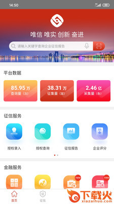征信苏州app,苏州本地的企业征信信息服务平台。企业风险预警、信息分析、信用评分等多元化功能免费使用,权威来源、客观信息、深度展现,帮助企业打造良好信用环境。