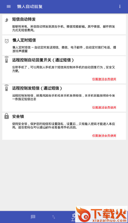 懒人自动回复能在您不方便的时候(开会、忙着、休假、下班、不在办公室等不希望被打扰的时候)帮您自动回复未接来电和短信。