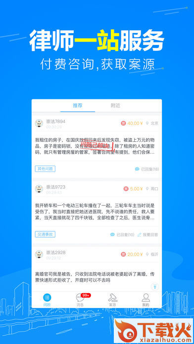 如果你是律师,分分钟刷新最新附近用户的法律咨询,获取案源,提升律师曝光率,完善律师个人品牌!通过品牌和与口碑传播,崇法能让你更加专注于自己的领域,让你不必担心服务后收不到律师费。只要你够专业,崇法APP保障你的收益;让你咨询就能获得收益,实现律师咨询职业化,新人也能快速成长,不用在律师事务所奔波!