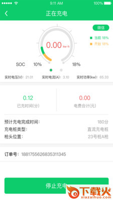 充电中实时查看充电电量、SOC、电压、电流、功率、充电时长等信息;