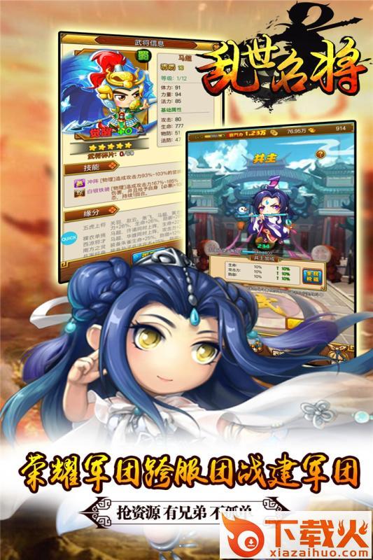 乱世名将腾讯版是一款以三国战乱纷争为主题打造的策略竞技手游,玩家在这里可以体验到超劲爆的战斗盛宴,上百种精心打造的三国人物等待玩家来招募,每个人物所具有的属性都是不同的,玩家可以根据自己手中所招幕的人物组合出不同的战斗阵容,战场变幻莫测,根据战局的变幻做出相应的战术调整,实时掌控战局!