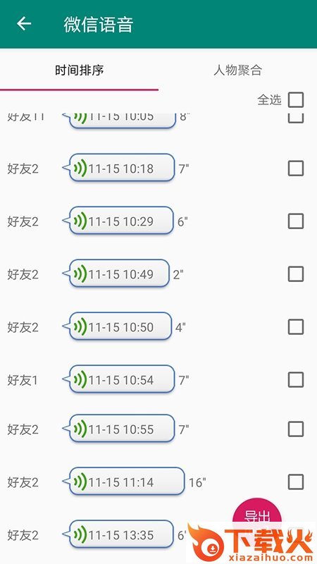 3.微信语音筛选,用户的语音记录会有很多,软件为用户筛选语音记录的功能,用户通过语音合并软件时间进行筛选。