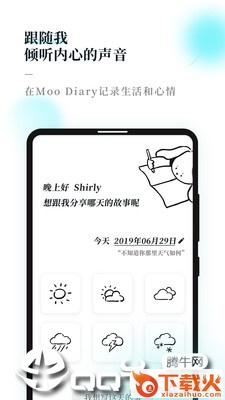 Moo Diary是一款用于记录你的心情的应用。这里可以记录你内心的声音,记录生活碎片,还会统计出你的心情指数,让你对你的情绪波动一目了然。快来下载记录吧。