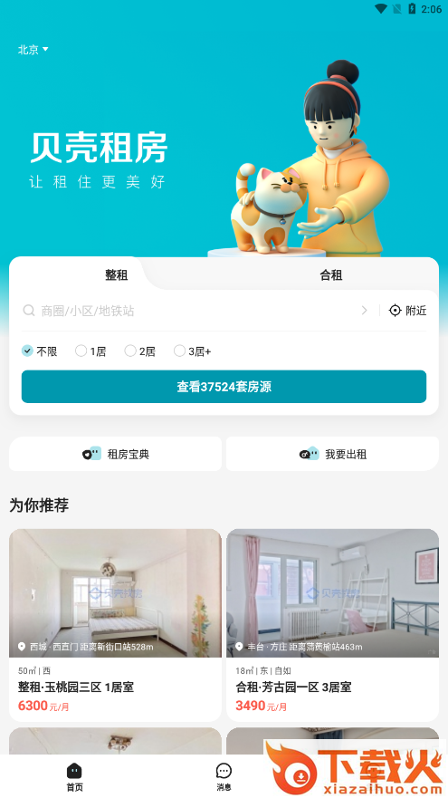 贝壳租房app,一款拥有海量真实房源的找房租房平台,提供大量房源信息,一键查看附近房源,在线咨询专家,为用户带来更便捷的在线租房服务,找到更多满意房源。