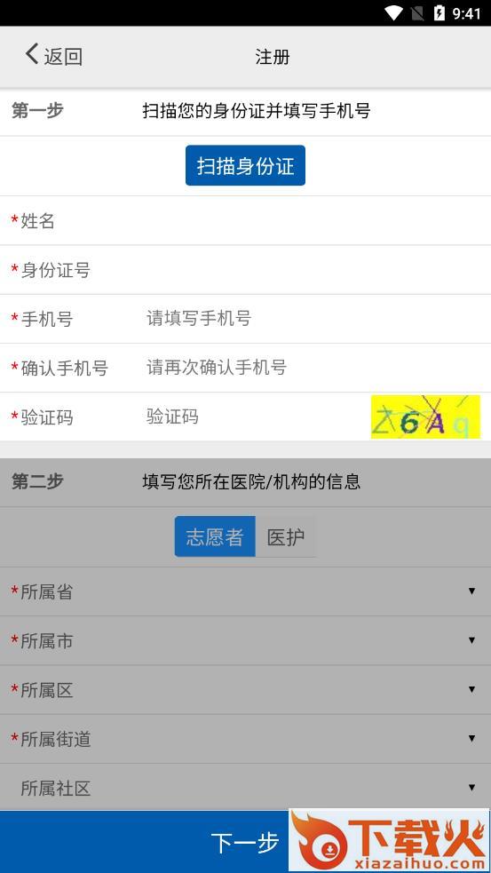 1)下载后,打开APP,在左下角注册处,点击注册;
