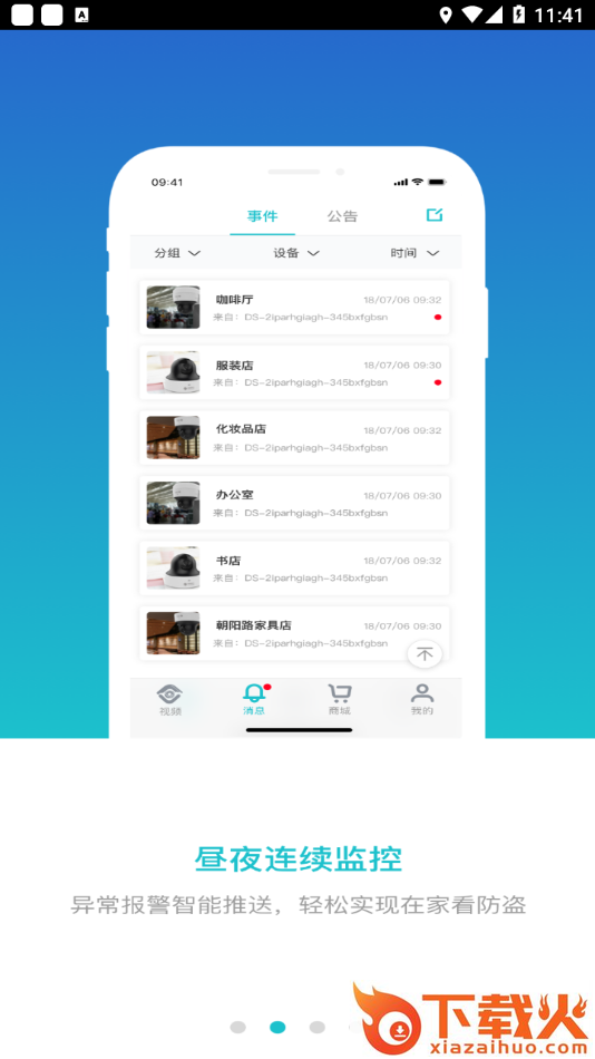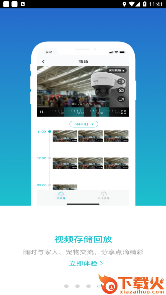 随时随地的查看实时监控视频,查看录像回放,并接收异常报警消息。